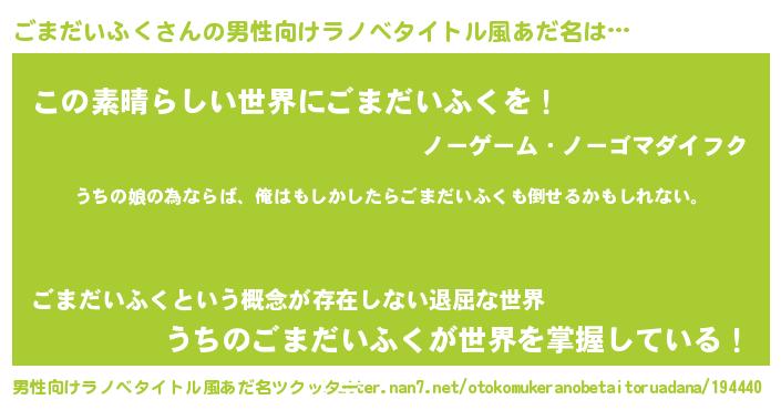 | 女子向けラノベタイトル風あだ名 | 『ごまだいふくの婚約者』 |