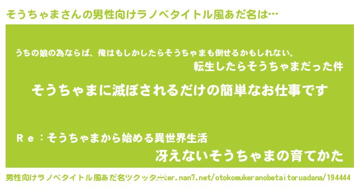 | ファンタジー風あだ名 | 『エターナルソウチャマー』『ゼソウトゥ』 |
