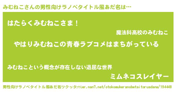 | 女子向けラノベタイトル風あだ名 | 『みむねこの雑貨屋さん』 |