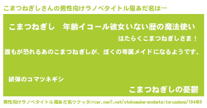| 女子向けラノベタイトル風あだ名 | 『異世界でカフェこまつねぎしを開店しました。』 |