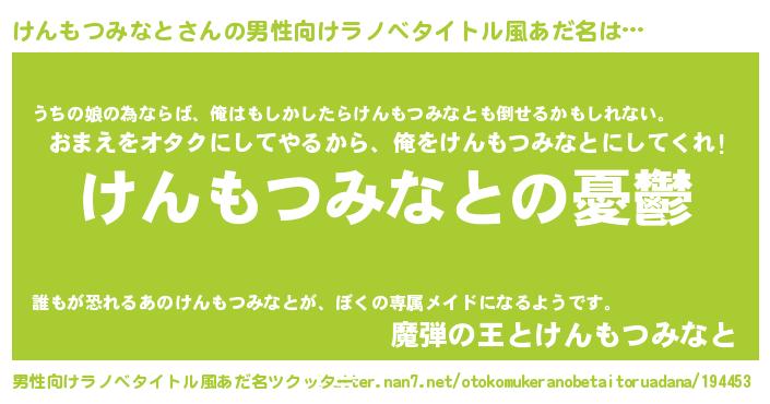 | 女子向けラノベタイトル風あだ名 | 『けんもつみなと姫と円卓の騎士』 |