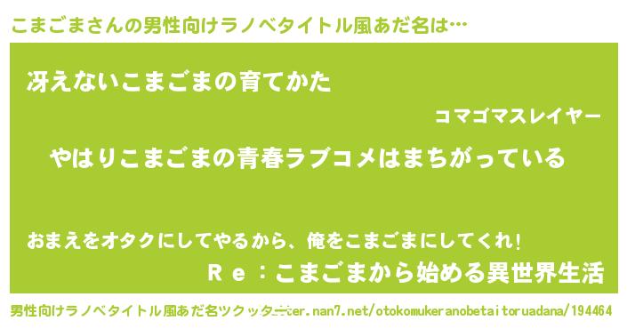 | 市区町村名 | 『こま幌市』『こま田谷区』 |