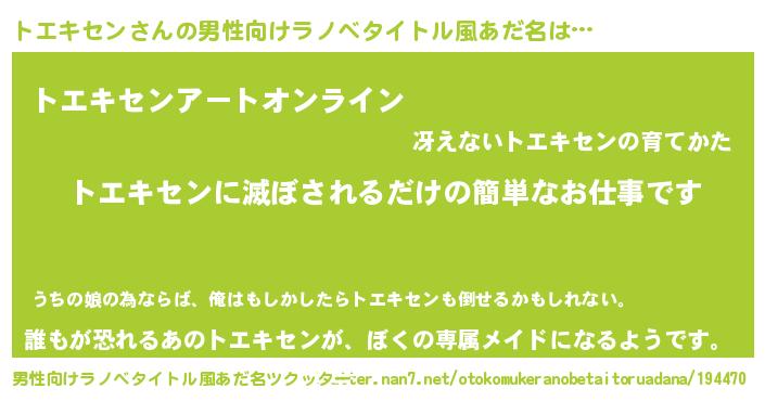 | 胡散臭い通販商品みたいなあだ名 | 『モテモテ間違いなし霊験あらたかなお札…その名も「トエキセン」』 |