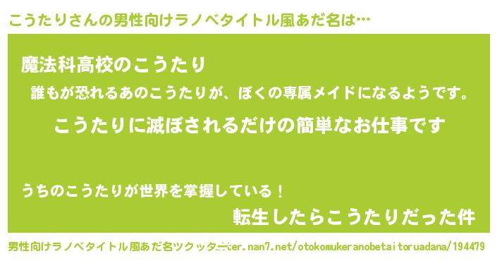 | 意味不明あだ名 | 『自称こうたり』『めかぶ科こうたり属』 |