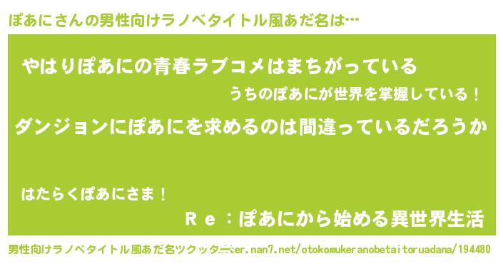 | 女子向けラノベタイトル風あだ名 | 『ぽあには平凡を望む』『闇のぽあに』 |