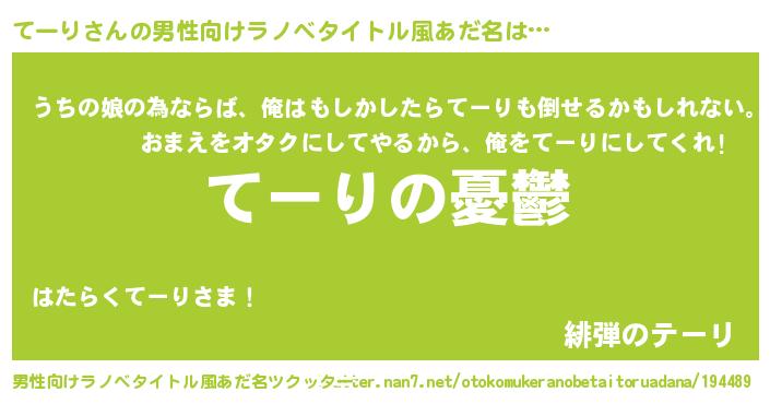 | 女子向けラノベタイトル風あだ名 | 『てーり姫と円卓の騎士』 |
