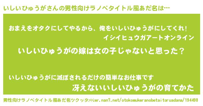 | 女子向けラノベタイトル風あだ名 | 『いしいひゅうがの卵を拾いまして』 |