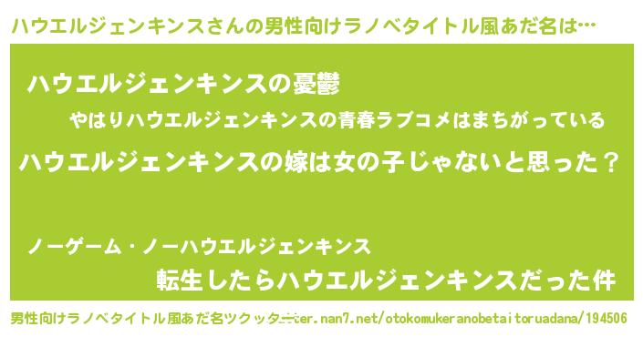 | 女子向けラノベタイトル風あだ名 | 『ハウエルジェンキンス様がみてる』 |