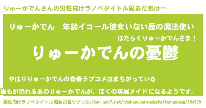 | 女子向けラノベタイトル風あだ名 | 『(仮)りゅーかでんのやんごとなき事情』 |
