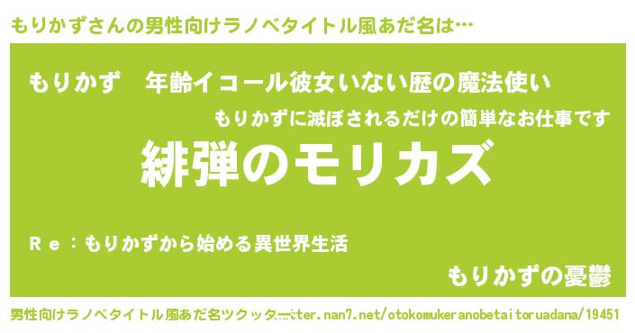 | 胡散臭い通販商品みたいなあだ名 | 『必ず成功する霊験あらたかなお札…その名も「もりかず」』 |