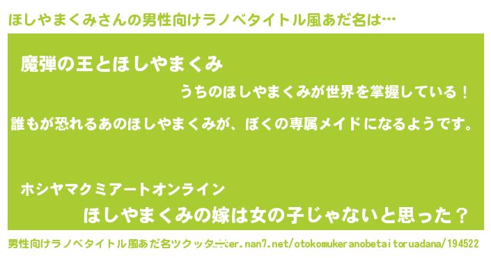 | ヘコむあだ名 | 『ほしやまくみ(震え声)』『ほしっ子』 |