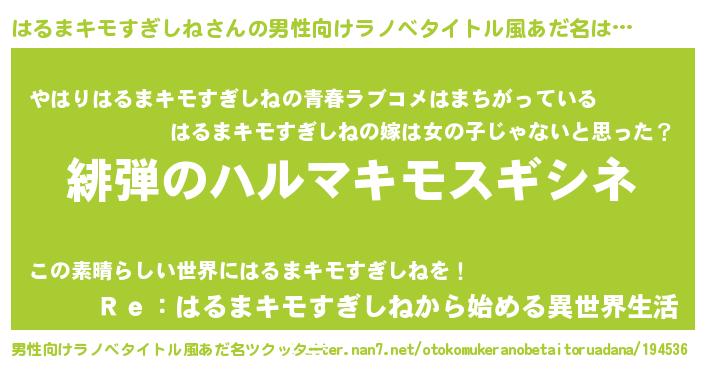 | 胡散臭い通販商品みたいなあだ名 | 『幸せが訪れる高級そうな絵画…その名も「はるまキモすぎしね」』 |