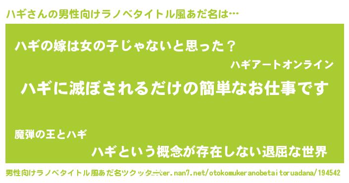 | 女子向けラノベタイトル風あだ名 | 『横柄ハギと宰相陛下』『ハギ様がみてる』 |