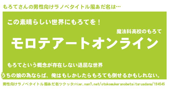 | 胡散臭い通販商品みたいなあだ名 | 『億万長者になれるブレスレット…その名も「もろて」』 |