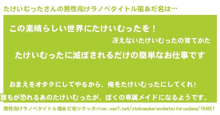 | 意味不明あだ名 | 『住所不定無職たけいむった(11歳)』 |