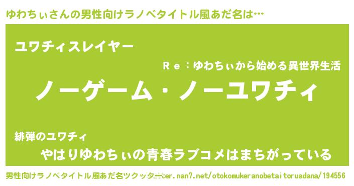 | ヒーロー風カッコイイあだ名 | 『天空の使者ゆわちぃ』『炎刃騎士ユワ』 |