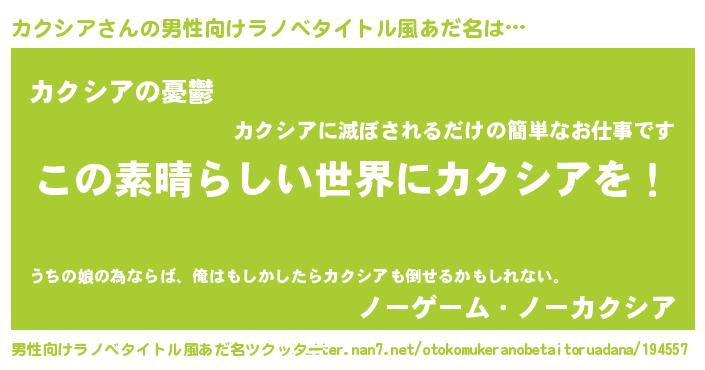 | 意味不明あだ名 | 『住所不定無職カクシア(79歳)』 |