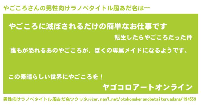 | ヘコむあだ名 | 『やごころ(小並感)』『やごっふぃ~』 |