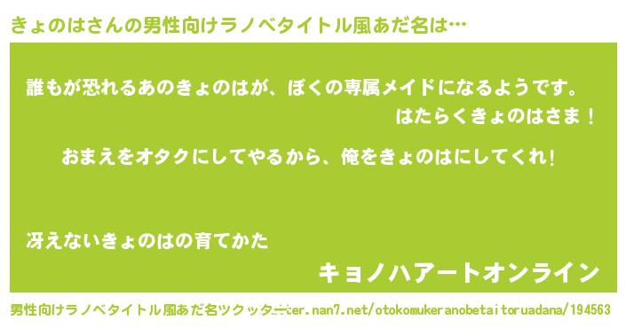 | ヒーロー風カッコイイあだ名 | 『愛の使者きょのは』『ネオキョノハ』 |