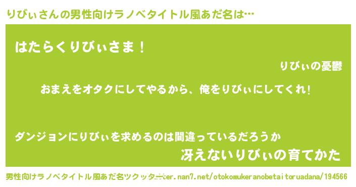 | ヘコむあだ名 | 『りびっふぃ~』『りびぷりん』 |