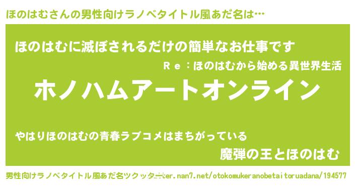 | ファンタジー風あだ名 | 『ホノフェル』『ヴァルホノーナ』 |