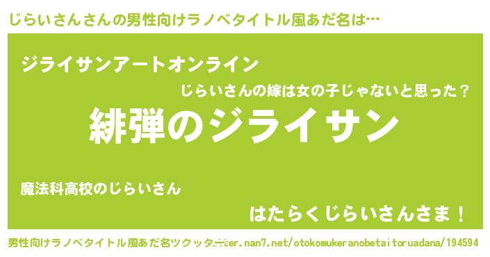 | 胡散臭い通販商品みたいなあだ名 | 『必ず成功するブレスレット…その名も「じらいさん」』 |