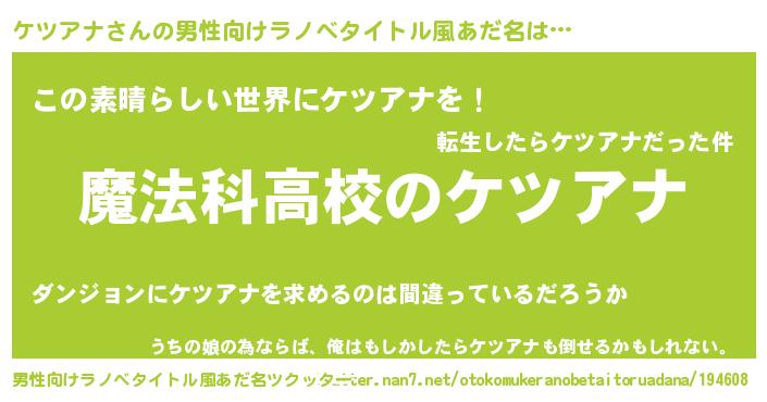 | 女子向けラノベタイトル風あだ名 | 『ケツアナなんてお断りですっ。』 |
