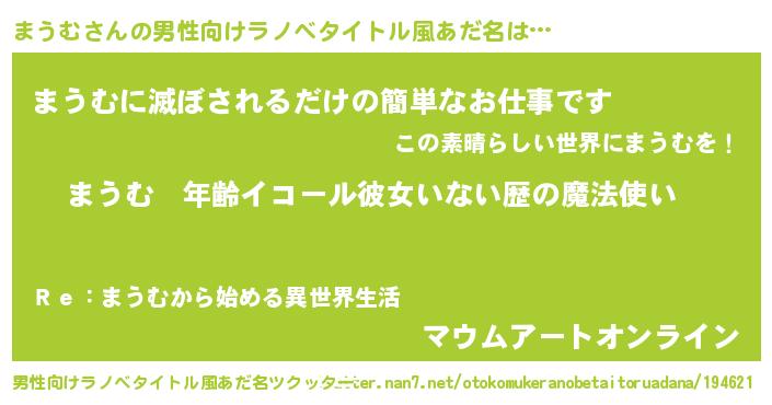 | 女子向けラノベタイトル風あだ名 | 『まうむの玉の輿計画!』 |