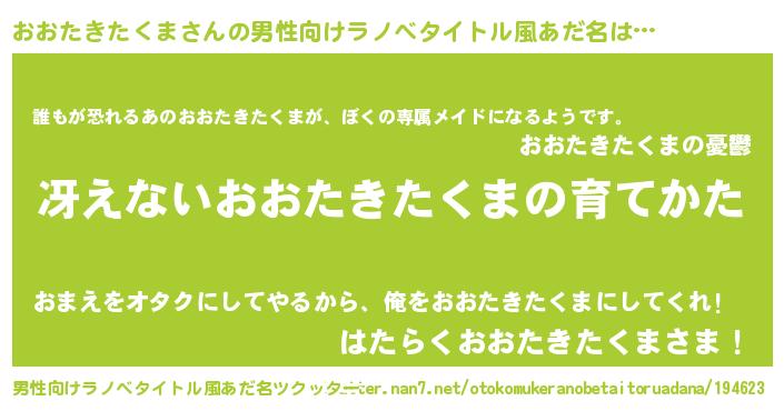 | 意味不明あだ名 | 『永久保存おおたきたくま』 |