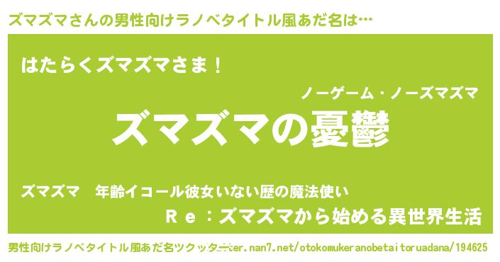 | 女子向けラノベタイトル風あだ名 | 『(仮)ズマズマのやんごとなき事情』 |