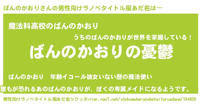 | 胡散臭い通販商品みたいなあだ名 | 『モテモテ間違いなし霊験あらたかなお札…その名も「ばんのかおり」』 |