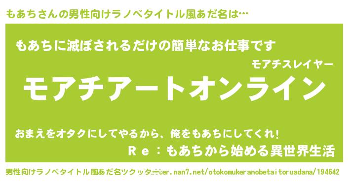 | 胡散臭い通販商品みたいなあだ名 | 『億万長者になれる霊験あらたかなお札…その名も「もあち」』 |