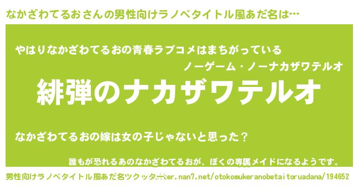| 女子向けラノベタイトル風あだ名 | 『シンデレラなかざわてるお家の靴箱館』 |