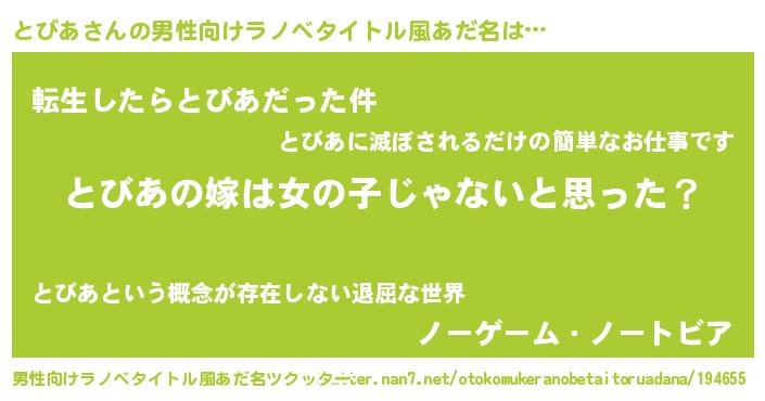 | ヒーロー風カッコイイあだ名 | 『天弓騎士トビ』『友情の使者とびあ』 |