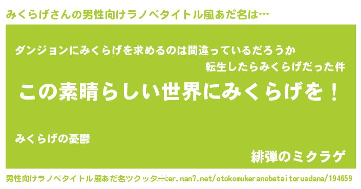 | 意味不明あだ名 | 『住所不定無職みくらげ(89歳)』 |