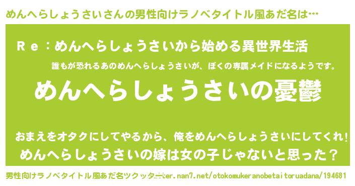 | 胡散臭い通販商品みたいなあだ名 | 『必ず成功する水晶球…その名も「めんへらしょうさい」』 |