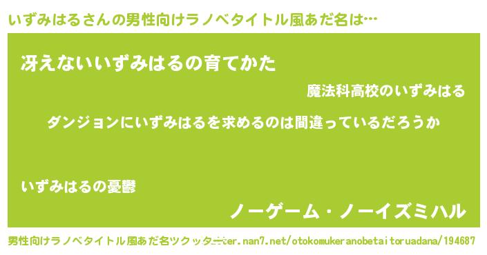 | ヒーロー風カッコイイあだ名 | 『魔戒騎士イズ』『天空の使者いずみはる』 |