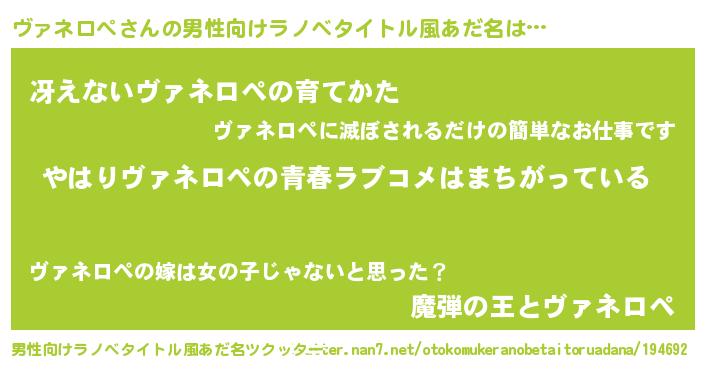 | 女子向けラノベタイトル風あだ名 | 『ヴァネロペの雑貨屋さん』 |