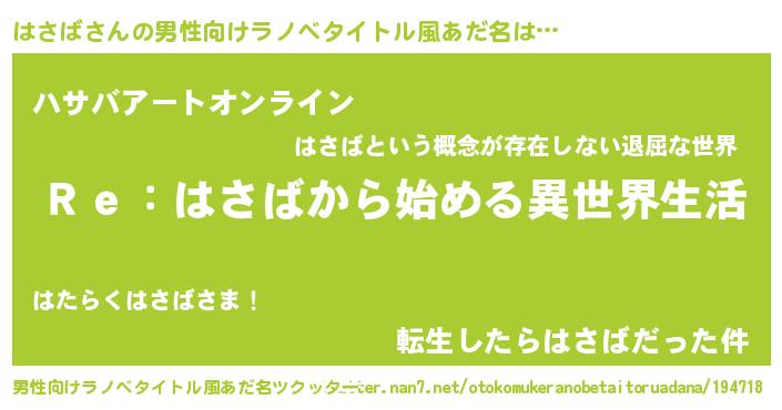 | ヘコむあだ名 | 『はさもー』『はさば(震え声)』 |