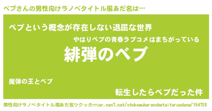 | ヒーロー風カッコイイあだ名 | 『ネオベブ』『ウルトラベブマン』 |