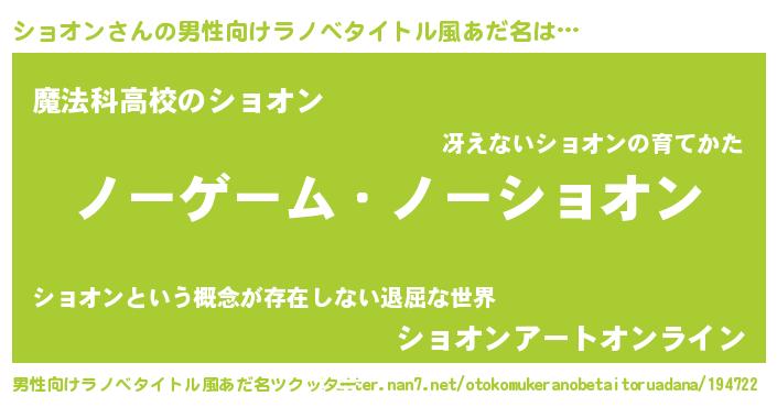 | 肩書あだ名 | 『ショオン助手』『ショオン閣下』 |