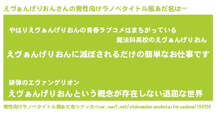 | ファンタジー風あだ名 | 『エターナルエヴァンゲリオンー』 |