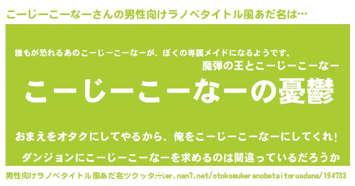 | 女子向けラノベタイトル風あだ名 | 『こーじーこーなー姫と円卓の騎士』 |