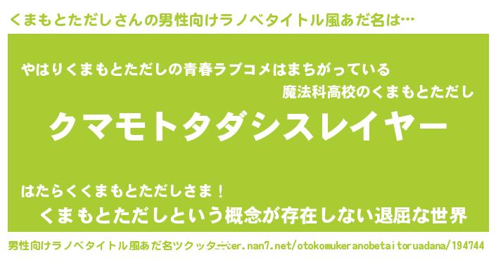| 肩書あだ名 | 『くまもとただし上級大将』 |