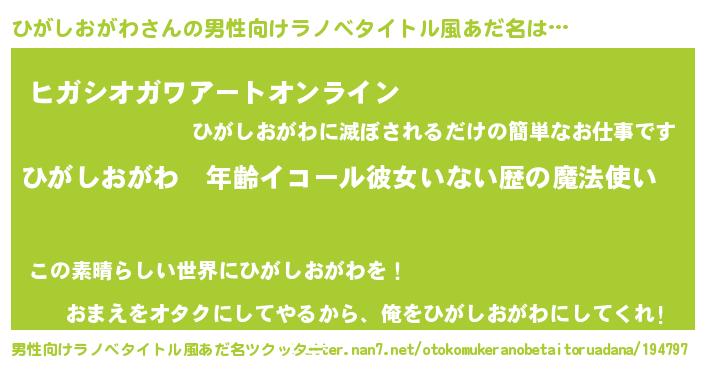 | 胡散臭い通販商品みたいなあだ名 | 『億万長者になれる霊験あらたかなお札…その名も「ひがしおがわ」』 |