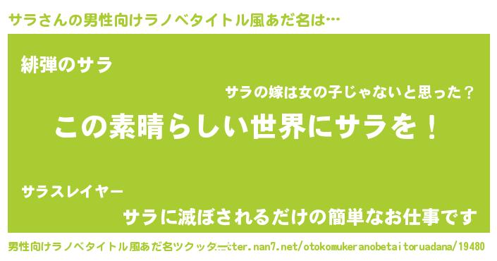 | 意味不明あだ名 | 『住所不定無職サラ(8歳)』『自称サラ』 |