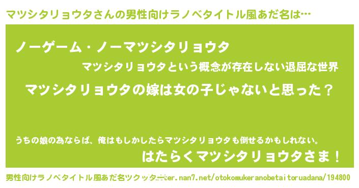 | ヘコむあだ名 | 『マツお』『マツシタリョウタ(小並感)』 |