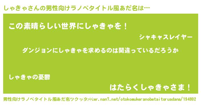 | 女子向けラノベタイトル風あだ名 | 『しゃきゃは平凡を望む』 |