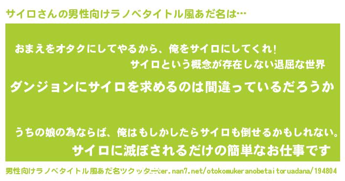 | 女子向けラノベタイトル風あだ名 | 『サイロは平凡を望む』『サイロ恋絵巻』 |