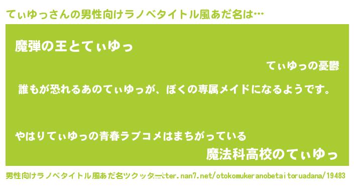 | ヒーロー風カッコイイあだ名 | 『ネオティユッ』『仮面ティダー』 |